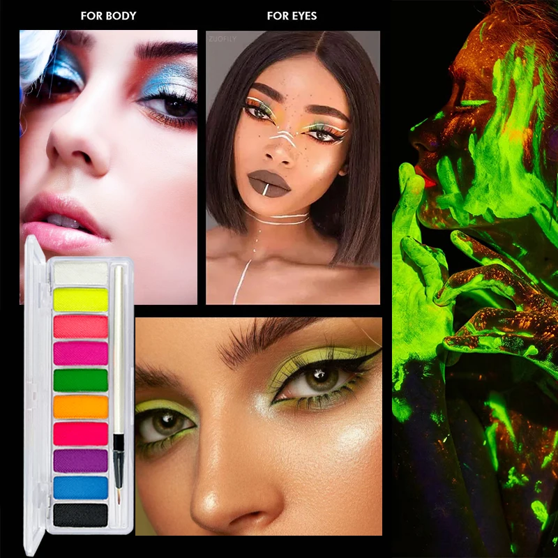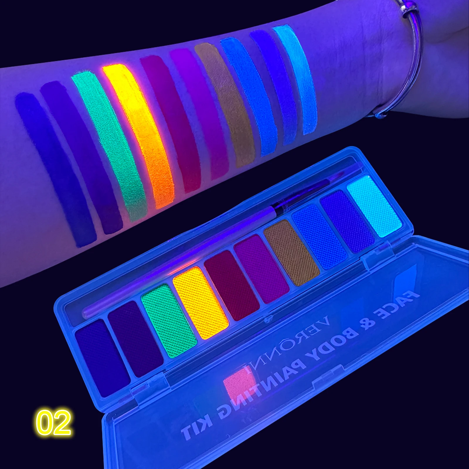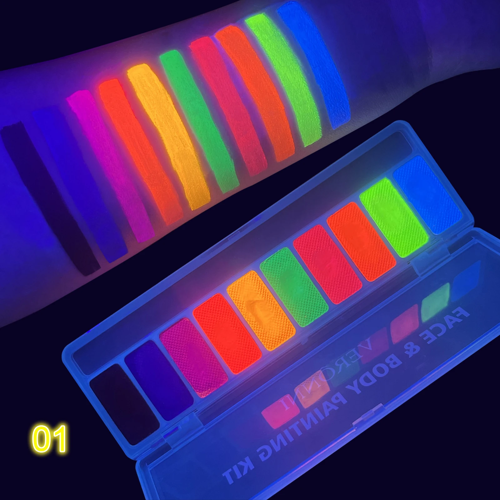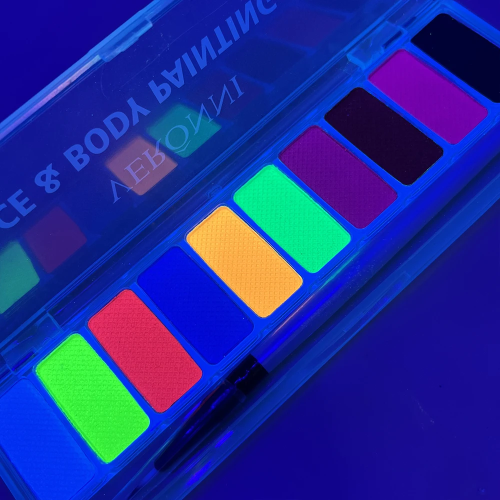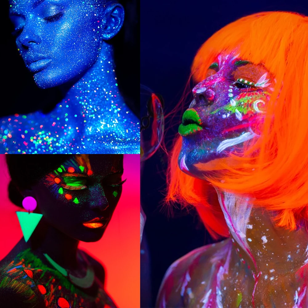 Bright, colored under UV lighting, the paints give off an immense fluorescent glow under UV lighting / blacklights.
