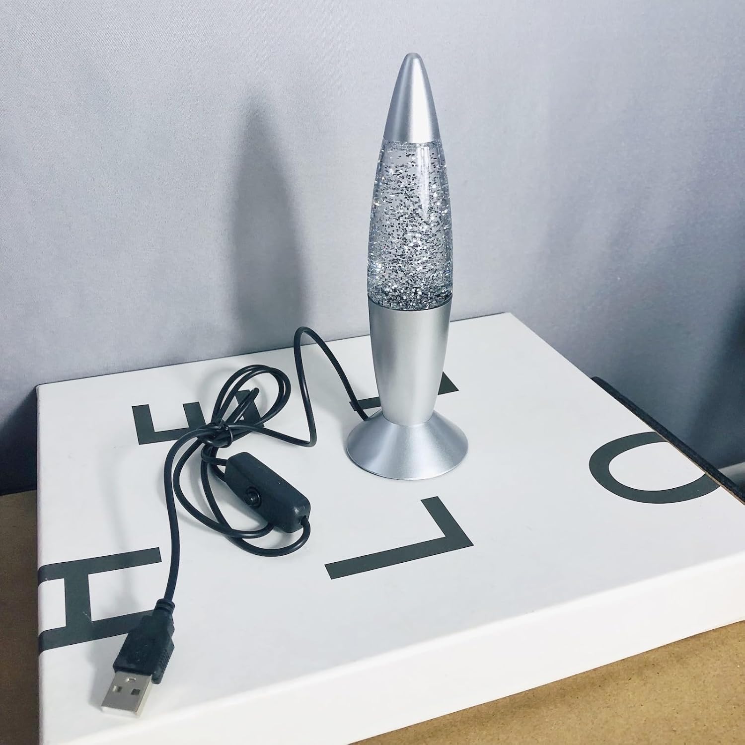 7.28” Mini Glitter Lamp,7 Color-Changing Liquid Motion Lamp for Adults and Kids as Night Light with USB Cable,Perfect for Home Bedroom Living Room Office Party Christmas Thanksgiving Day as Gift Decoration Features: --Ideal for home, office and bed room --Glass housing with sturdy base and matching top --Avoid jostling the lamp which can cause wax to break-up --Get your groove on with the 18.5cm/7.28" Liquid Lamp! --This cool light fixture has been popular for decades, and for good reasons. --With soft, soothing light and wax flowing in mesmerizing patterns, the Liquid Lamp creates a relaxing ambient mood for your home or office. --Product size: 6*6*18.5CM --Lights color:Silver Base has 7 changing colors:red /pink/blue /green /rose red/ yellow /white gradient color -- Base color: White,Black,Sliver --ABS+Glass material,duarable and fashion -- USB powered(adapter is not included) --Please shake the liquid up and down to mix it well before use. If it does not work when plugged into the USB port, press the switch button on the cable. Sliver,White,Black Lamp Shade for you choose --Package including: 1 x Lava Lamp with USB cable.