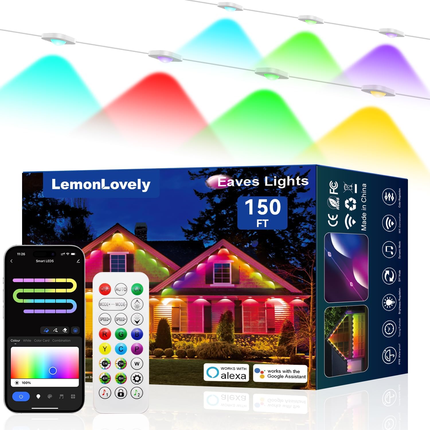 | Recommended Uses For Product | Before installing the outdoor permanent light, please power it on to test whether all the light strings light up normally; this LemonLovely smart outdoor permanent light uses 2.4G WiFi control, please place the adapter and controller indoors for better signal reception and waterproofing. |
