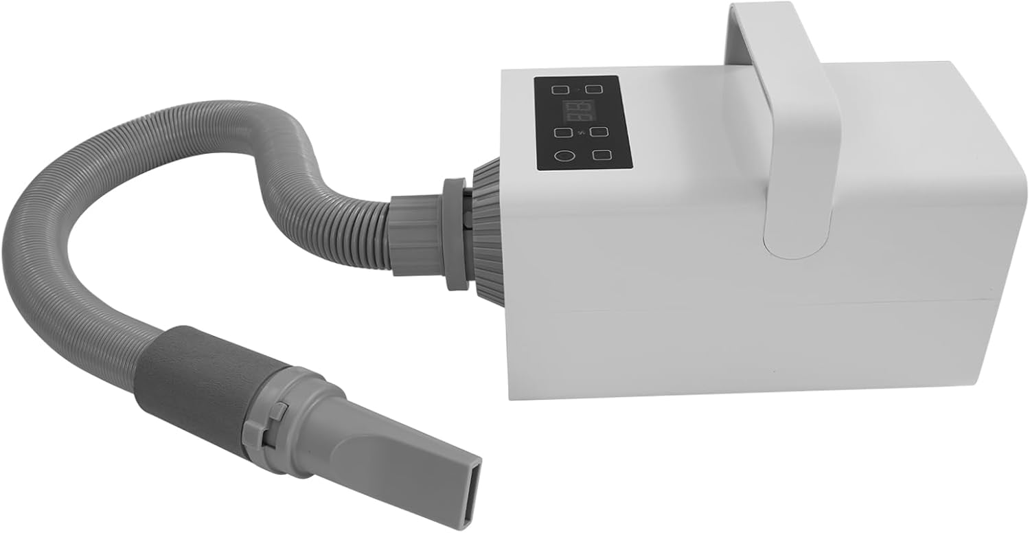 Product Description:This pet grooming dryer is made with impact-resistant materials, which extend the product's lifespan. Additionally, it features an LCD display, making operation simple and allowing you to adjust the temperature and wind speed easily. We also provide four different types of nozzles, so you can choose the one that best suits your needs. In summary, this is a user-friendly product that combines practicality and safety.Details:Clean Filter: This product uses filter cotton to effectively remove hair, making daily cleaning easy and convenient.Four Nozzles: Four different nozzles, including a finger nozzle, wide flat nozzle, flat nozzle and round nozzle, provide different airflow effects. Whether it's for quick drying or gentle grooming, our dryer allows you to choose the most appropriate nozzle for your pet's needs.Application:This pet hair dryer is suitable for large, medium, and small pets, meeting the grooming needs of different-sized animals. Additionally, the product comes with four different types of nozzles, allowing it to handle various usage scenarios. Specification:Material: ABS Plastic, PVC, PE Foam Color: WhitePlug Type: US Standard Assembly Required: YesNet Weight: 3.94kg/ 8.69 lbsGross Weight: 4.15 kg/ 9.15 lbs Product Size: 32*20*15 cm/ 12.6*7.87*5.91 inPackage Size: 36*34*18cm/14.17*13.39*7.09 inWind Speed: 7 GearsVolume: 57-80dBPowder: 2200wVoltage:110vFrequency: 60HzAir Speed: 20-32m/s / 65.62 - 104.99 ft/sAdjustable Temperature: 35-60℃/95-140℉Package Included:1*Pet Grooming Dryer 4*Nozzles1*Hose