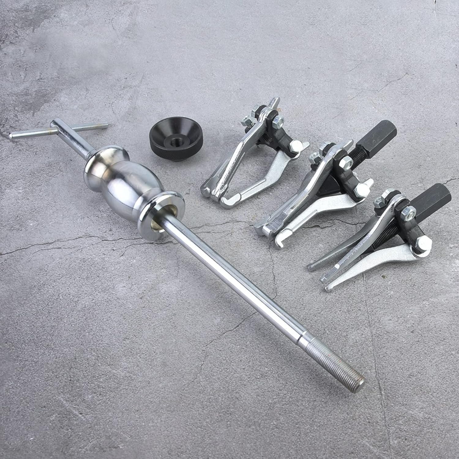 [Precise Bearing Extraction] Utilize the slide hammer to effortlessly pull out stubborn bearings without hassle.[Portable and Convenient] The 1.2kg slide hammer is easy to carry, making it a convenient tool kit for various mechanical repair tasks.[Highly Effective Locking Mechanism] Capable of securing the nut to open 3 jaws and grip the bearing firmly for efficient removal.[Versatile Triple Leg Pullers] Includes three sets of 100mm pullers with a locking feature for secure clamping inside or outside gears and bearings.[Durable Carbon Steel Construction] Crafted from drop-forged carbon steel, the puller arms offer reliability and strength for long-lasting use.Spec:Features:Capable of locking the nut to open 3 jaws and clip the bearing.The slide hammer is utilized to pull out the bearing.Drop-forged carbon steel puller arms with locking/gripping function.The kit includes three sets of 100mm triple leg pullers with locking function which clamp the jaws firmly inside/outside the gear or bearing.Contains 1.2kg slide hammer, easy to carry, convenient to use.Specifications:Condition: Brand NewMaterial: Carbon steelColor: Shown as pictureQuantity: 5pcsSize:Small Internal Puller Diameter: Approx.15-40mm/0.6-1.6inLarge Internal Puller Diameter: Approx.30-100mm/1.2-3.9inExternal Puller Diameter: Approx.15-120mm/0.6-4.7inPackage List:1 x Gear Bearing Puller Kit