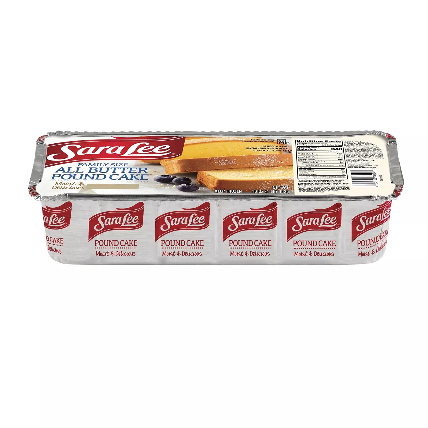 Make any meal special with the delicious taste of Sara Lee All Butter Pound Cake. Made in batches from scratch, with real fresh creamery butter, this pound cake is sure to delight with a tender and buttery flavor. Perfectly paired with fruit, ice cream, and many more recipe inspirations. This Pound Cake is 16oz. with 6 recommended servings of 340 calories, 0g of trans fat, containing milk, wheat, and egg. With no artificial flavors or colors, and no high fructose corn syrup, you can enjoy a real desert experience that will make any occasion a little bit sweeter. Please note that our warehouse packs everything as tightly as possible to ensure the item(s) remains frozen/refrigerated during transit and the coolant surrounds the item(s). As dry ice dissipates and gel packs thaw, this will create pockets of space in the package whereby products can shift around.Upon receiving the delivery, please immediately place your items in your refrigerator or freezer. If you are away when your package arrives, please watch your email for delivery confirmation. Upon delivery, plan for someone to place them in a refrigerator or freezer as soon as possible.