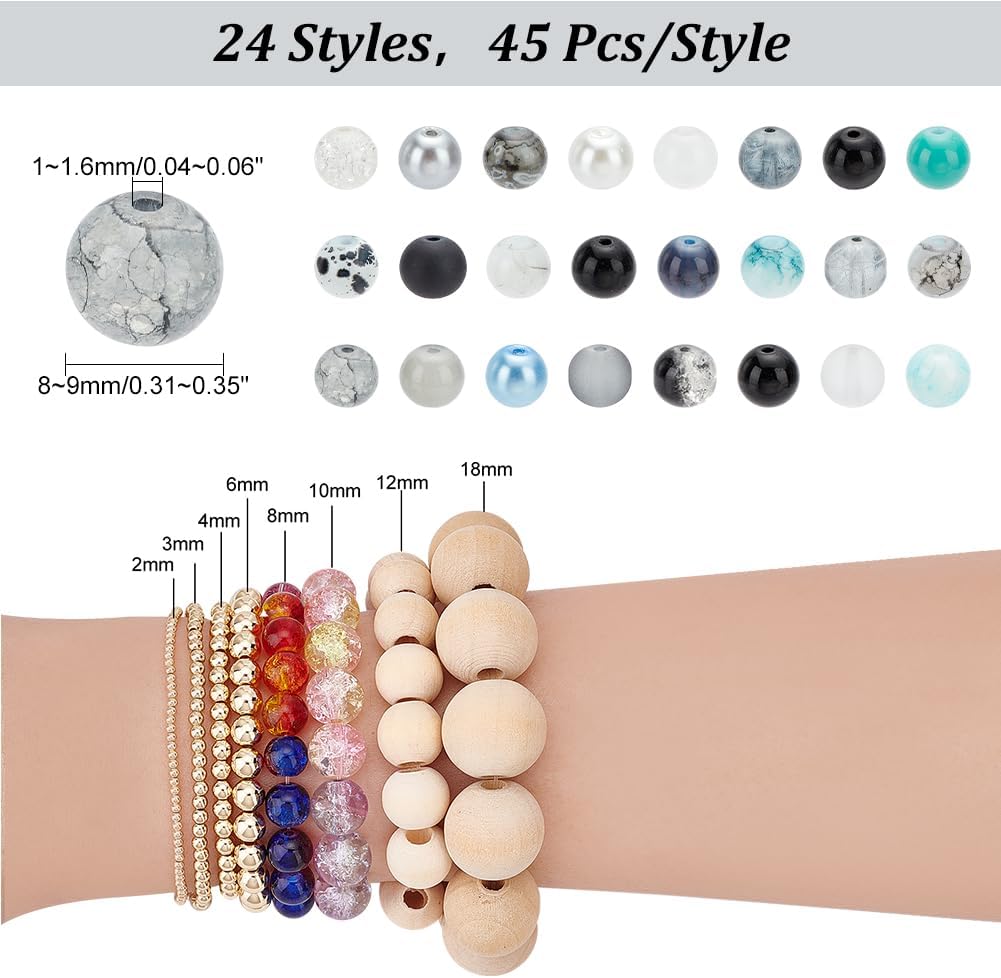 Mixed Style Glass Beads, Dyed, Round, 24 Colors, Gray Size: about 8~8.5mm in diameter, hole: 1.3~1.6mm; about 45pcs/comparment, 1080pcs/box; packaging box: 21.8x11x3cm. Polyester Crystal Thread String Cord Perfect for making bracelets and necklaces, and for using with gemstone beads or glass beads and weaving with seed beads. Size: about 0.8mm in diameter Length: 60 meters/roll Color: white clear Material: Polyester Spandex Yarns